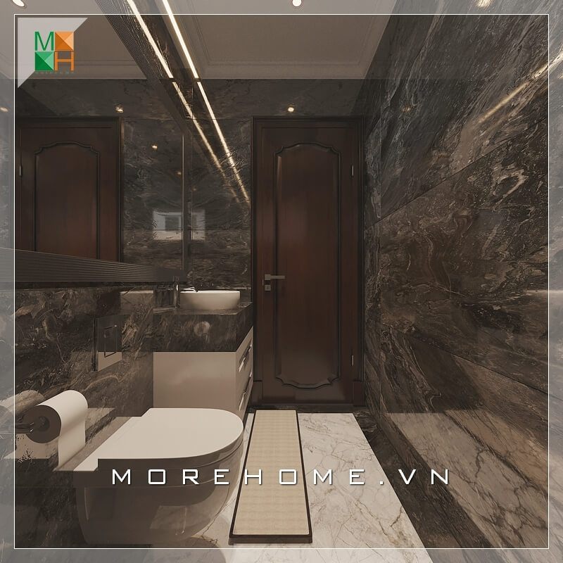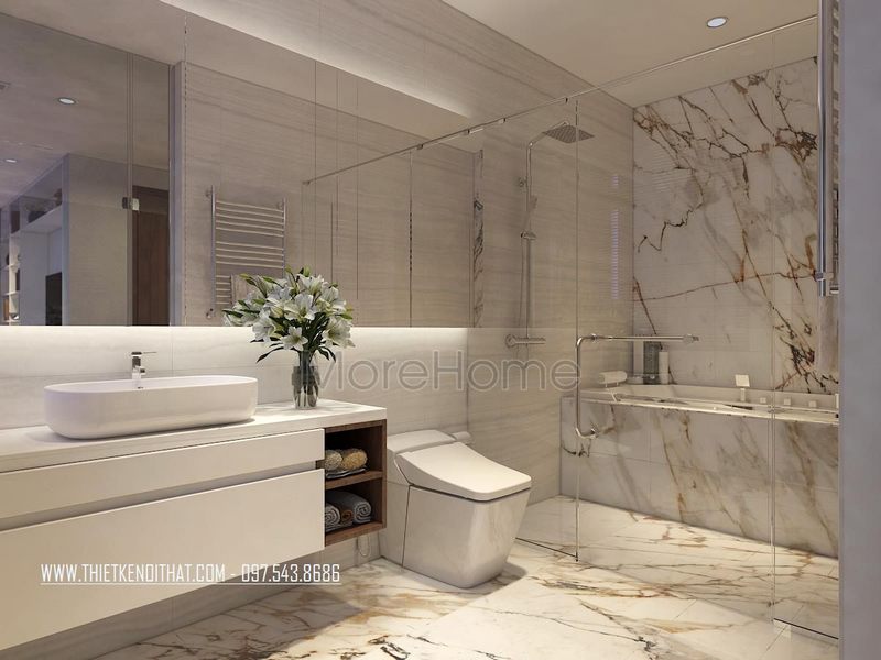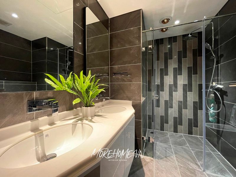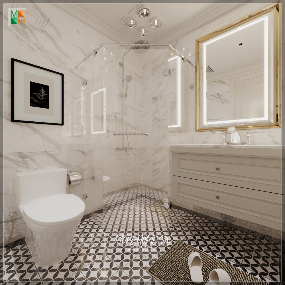 Phòng tắm trang trí không gian và nội thất với phong cách hiện đại đáp ứng đầy đủ nhu cầu sử dụng của gia chủ.