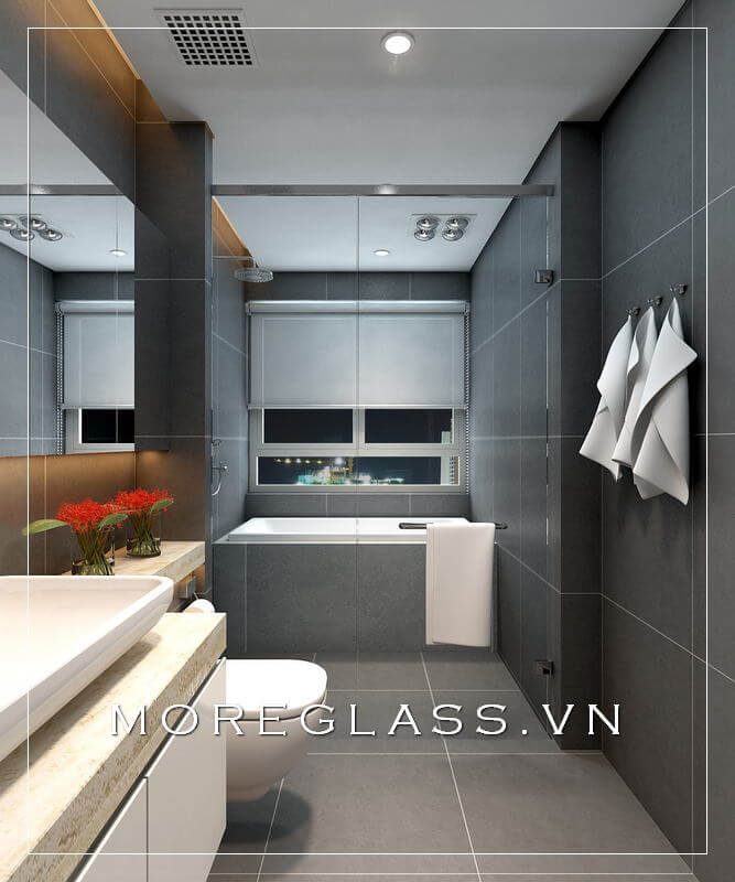 Đón nhận ánh sáng không khí tự nhiên bên ngoài thông qua cửa kính thông thoáng giúp phòng tắm luôn khô ráo tránh ẩm mốc